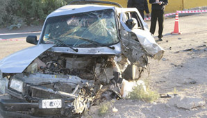 San Juan, 22 de noviembre.- Destrozada. Así quedó la camioneta Ford Ranger que esta mañana impactó de lleno contra la pared del puente de un canal en calles 5 y Pellegrini, de La Bebida. Por la gravedad del accidente, el conductor del vehículo falleció en el lugar.