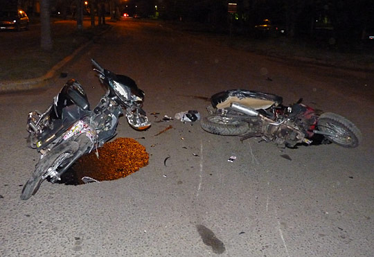 Durante la noche de ayer, minutos antes de las doce, se produjo un violento accidente de tránsito entre dos motos, que dejó a dos jóvenes heridos, uno de ellos de gravedad.