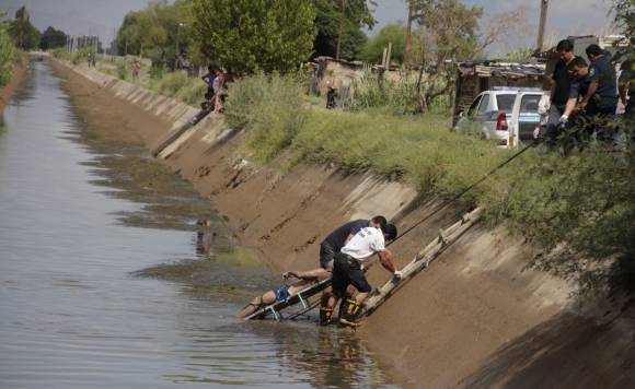 Triste final Cayó la coincidencia que fue el domingo último, justo el día del cumpleaños de su padre fallecido. Martín Leonardo Galleguillo había ido con su madre, su padrastro y sus tres hermanos menores a visitar a unos familiares en calle Florida, entre Salvador María del Carril y Quiroga, en el distrito Dos Acequias, San Martín. El calor agobiaba, de modo que tras el almuerzo se metieron al piletín de la vivienda. Martín no se conformó y empezó a rondarle la idea de bañarse en el canal Perón, que pasa enfrente a la vivienda. Fue ahí cuando le comentó a su madre que tenía ganas de meterse en ese cauce. “Me dio miedo. Y le dije que ni lo pensara. Pero se tiró igual. Mi otro hijo me avisó. Cuando corrí al canal, le vi sólo la cabeza y el agua ya se lo llevaba. Con mi marido nos subimos al auto y lo seguimos hasta que no lo vimos más”, relató María. Eran cerca de las 17.30, la misma hora fatídica de hace 26 años. Esa tarde, los bomberos salieron en su búsqueda en el canal, pero fue en vano. Ayer muy temprano, los bomberos al mando del comisario inspector Marcelo Heredia reiniciaron los rastrillajes, ya con el corte del agua. A las 7.30 la dotación al mando del cabo Sergio Marinero encontró el cuerpo de Martín Leonardo Galleguillo en el canal Quiroga, en el límite de Caucete con San Martín, a 26 km de donde desapareció. Presentaba un golpe en la frente, lo que aparentemente lo desmayó al zambullirse.
