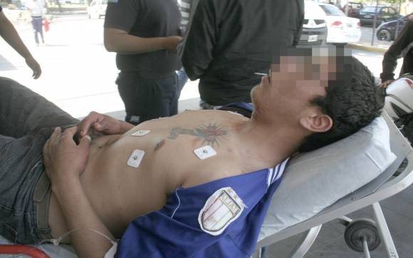 El menor herido estuvo detenido hace dos meses en la comisaría del Bº Los Tamarindos y también pasó por la Seccional 17ma por robos arrebatos, explicó un investigador. La versión policial es que este jovencito junto a su cómplice intentaron asaltar a José Gimenez (34), quien ayer a las 10.30 fue a tomar un pedido (vende fiambres) a un almacén de calle Santa Cruz en el Bº San Francisco, Chimbas. De acuerdo a los uniformados, lo atacaron en la calle y uno lo encañonó con un revólver. El preventista supuestamente temió que le disparara, entonces se abalanzó contra el ladrón para sacarle el arma, contaron. Ahí vino el forcejeo al que también se sumó el otro asaltante, supuestamente el adolescente, para tratar de reducir a la víctima, aseguró un jefe policial. En esos instantes, en medio de los manotazos y golpes se escuchó un disparo que salió del arma de uno de los ladrones, dijeron en la Policía. Un investigador señaló que el preventista les relató que vio sangre y se asustó creyendo que lo habían herido a él, pero después vio apartarse a los dos ladrones, que emprendieron la fuga. No pasó mucho tiempo que llegó el oficial Marcelo Gimenez y otro policía de la Motorizada Nº 4, que averiguaron lo que había pasado y salieron a buscar a los sospechosos hasta que en una casa encontraron a ese jovencito con una herida de bala en el costado derecho del cuello, cerca de la nuca.