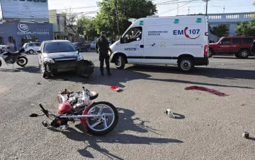 Letal. Así fue el golpe que sufrió ayer en la tarde en la cabeza un suboficial principal del RIM 22 tras protagonizar un violento choque en la peligrosa esquina de Ignacio de la Roza y Ameghino, en Capital. Aparentemente, el hombre viajaba en moto desde su casa en Marquesado, Rivadavia, hacia el centro capitalino a hacer unos trámites, contó un familiar. Pero nunca llegaría. En el camino chocó contra un auto y se lastimó seriamente. En una ambulancia lo trasladaron y lo auxiliaron pero falleció antes de llegar al hospital, dijeron en la policía.