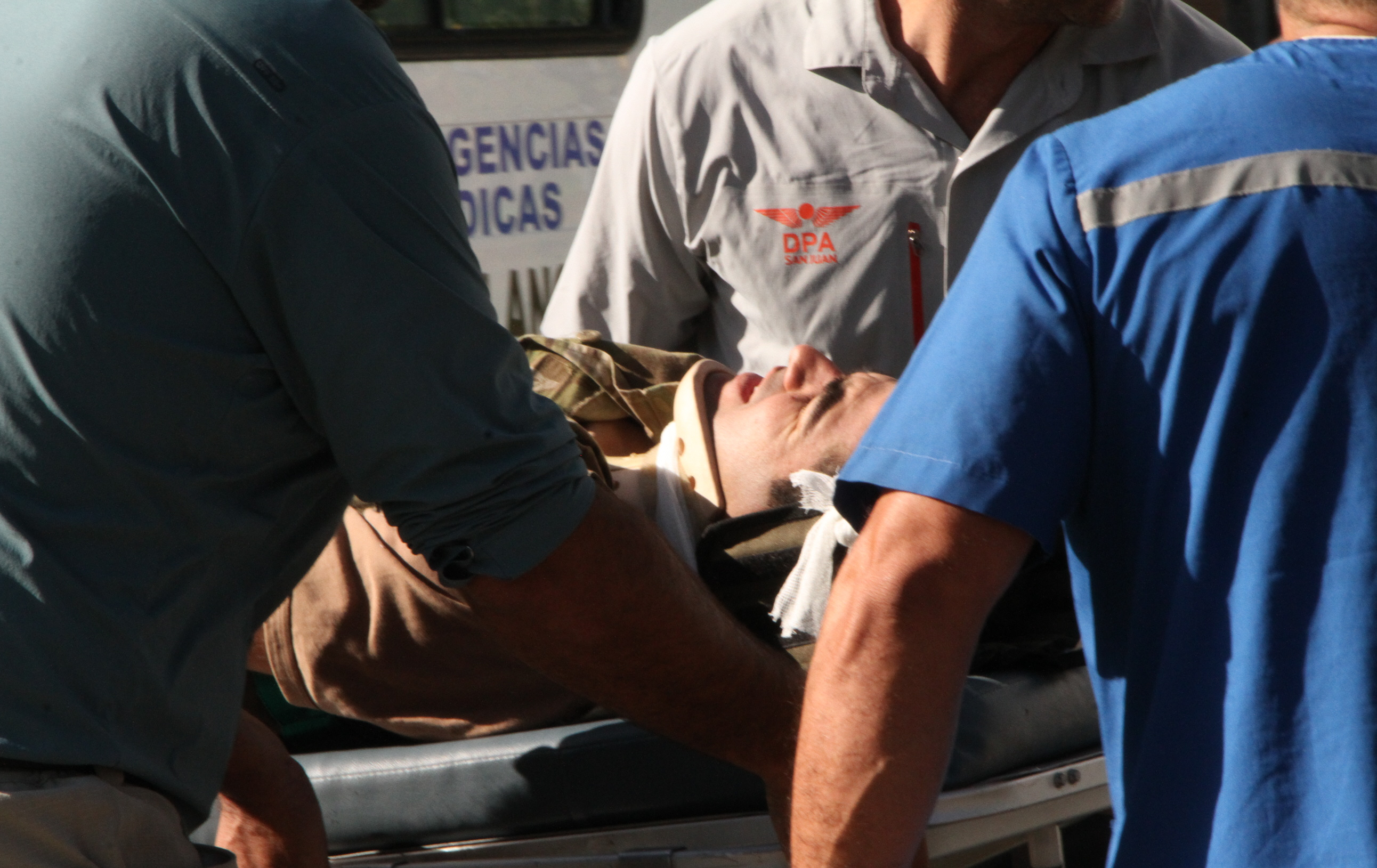 Traslado. Los tres militares que sobrevivieron al accidente fueron trasladados primero en ambulancia al Hospital de Rodeo y luego, en helicóptero, al Rawson, de Capital.