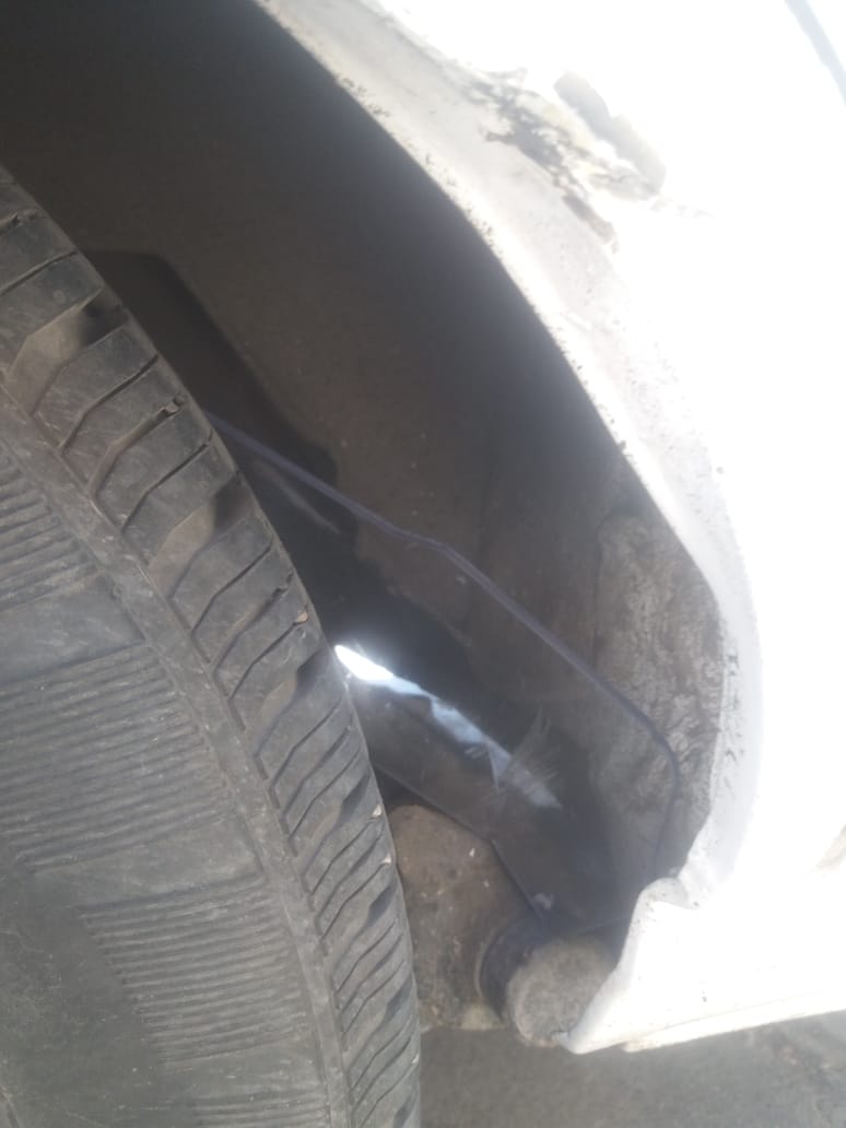 Producto del impacto, según los testigos, la rejilla del auto salió despedida y el paraviento de la moto quedó incrustada en la rueda trasera del Renault.