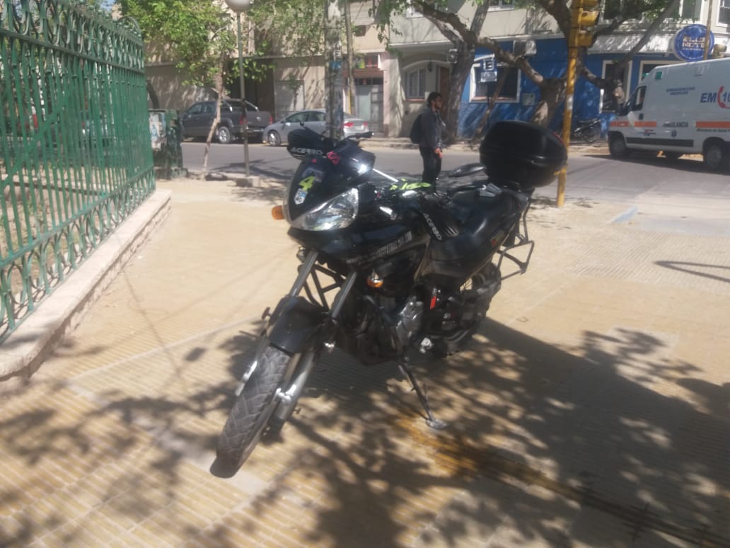 Este sábado, cerca del mediodía un motociclista que transitaba de Oeste a Este por avenida Libertador, chocó de atrás a un auto Renault en la esquina de calle Santiago del Estero, en Capital.