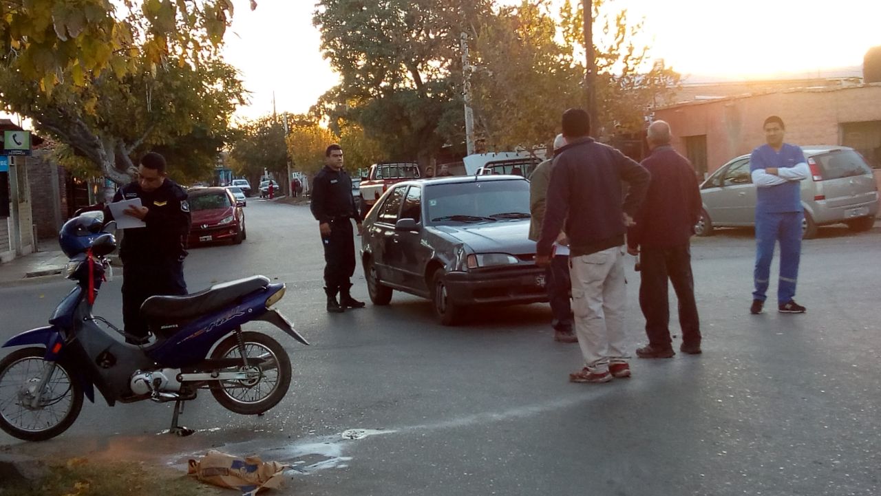 Cerca de las 18, un auto chocó en la equina de calles Salta y Pasteur con una moto. Producto del impacto, el motociclista quedó debajo del Renault.