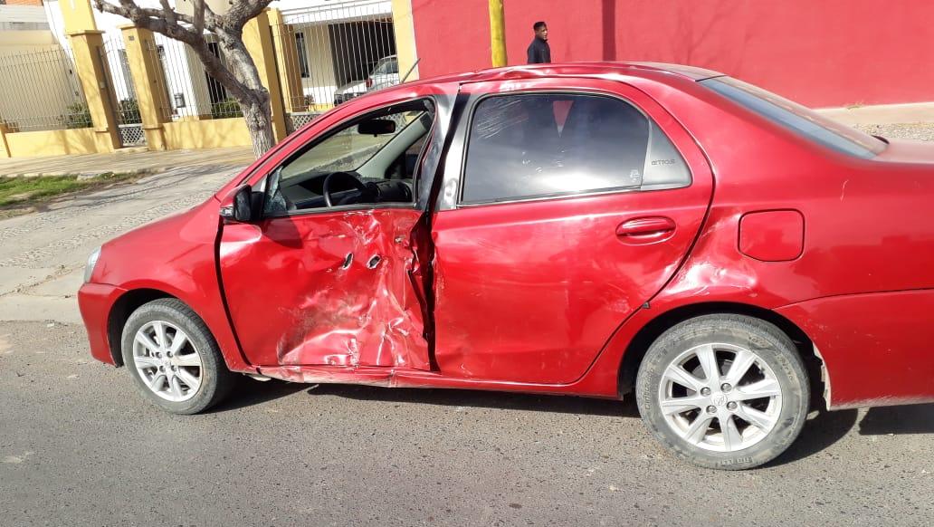 Según los testigos del hecho, el sujeto que manejaba la moto impactó y destrozó la puerta del conductor del Toyota Etios que transportaba a una familia.