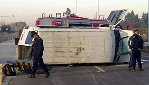 San Juan 2 de junio.- Al menos 11 heridos y una persona muerta, es el saldo de un tremendo accidente registrado sobre ruta 40 e intersección de calle 11, Pocito. Un grupo de 9 obreros de la construcción era transportado en un mini bus hacia una escuela ubicada en calle 18, donde debía continuar con las obras y a la altura de calle 11, aparece un Volkswagen Gol Tend y los choca. La colisión provocó el vuelco del minibús marca Mercedes Benz y como consecuencia un hombre mayor de edad perdió la vida.