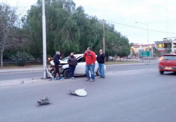 Todo sucedió esta mañana, cerca de las 8, cuando este uniformado (que no fue identificado) viajaba por avenida Rawson y a la altura de calle San Lorenzo, en Capital, terminó saliéndose de la calzada y frenando contra el poste de luz.