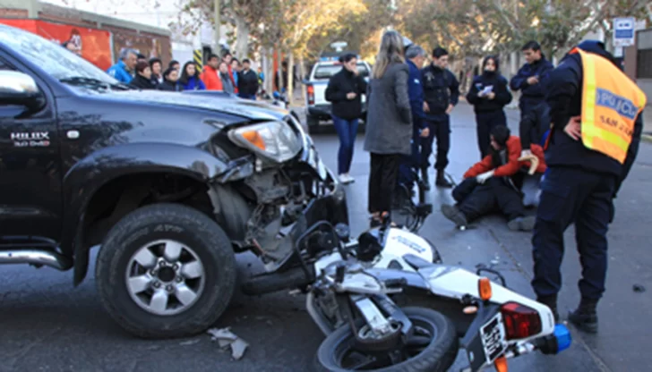 Esta vez, el escenario fue la intersección de calle Jujuy y Santa Fe, en Capital, cuando un agente de la motorizada fue embestido por una camioneta y voló unos 5 metros, precisaron fuentes policiales.