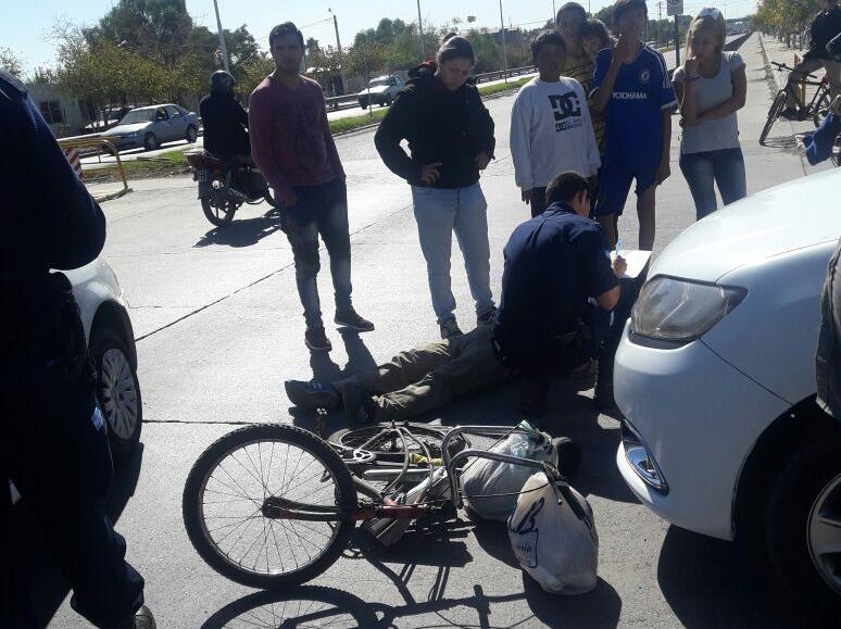 El siniestro vial sucedió cuando un auto remis atropelló a un hombre que circulaba en bicicleta que volvía del trabajo a su casa. El ciclista cayó al pavimento y sufrió lesiones, ninguna de gravedad, informaron fuentes.