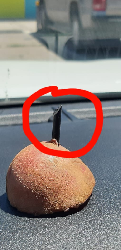 Si bien la situación inquietó al hombre, las certezas llegaron al día siguiente. “El martes al mediodía fuimos con mi esposa a un outlet que está a unos 10 kilómetros, más cerca de Coquimbo. Cuando llegamos me sorprendió que en la puerta había un hombre cambiando la rueda de su camioneta Toyota con patente argentina, pensé ‘qué casualidad’. Estacionamos en el interior del lugar, donde hay guardias de seguridad y estuvimos unas dos horas. Yo estaba bastante alerta y un poco traumado, por eso, antes de subir me arrimé a la camioneta y me agaché a mirar las gomas. Ahí descubrí que había, detrás de una de las gomas traseras, la mitad de una papa con una especie de clavo hacia arriba”, afirmó el hombre.