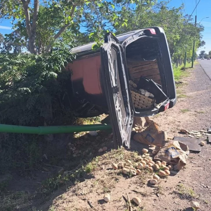 Tras el impacto, el vehículo de mayor porte volcó y terminó en la banquina, perdiendo en el camino gran parte de la carga de pan que trasladaba. En tanto que el motociclista terminó en el pavimento.