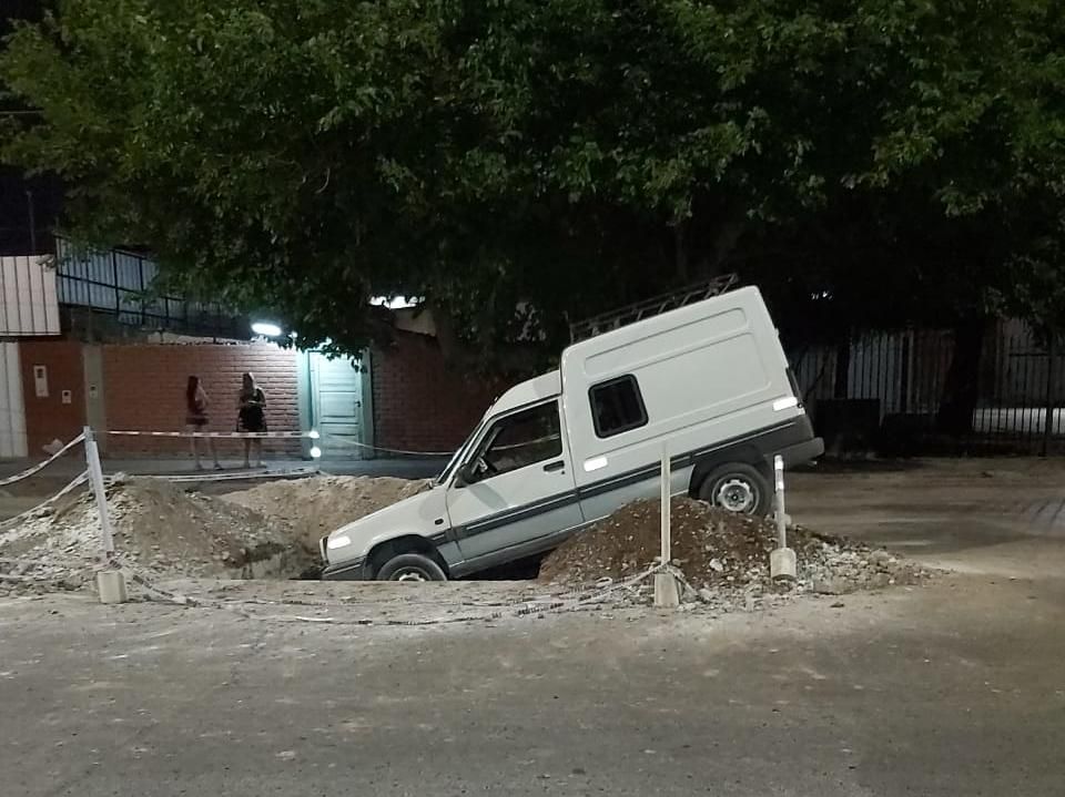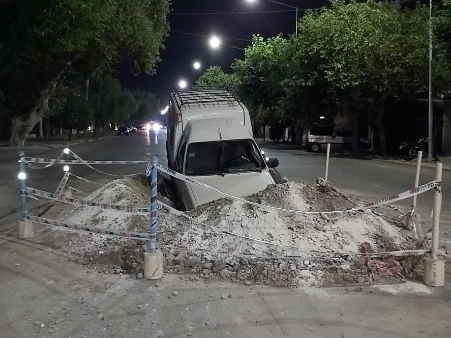 Sin embargo, un utilitario no alcanzó a esquivarlo y terminó incrustado de punta en el agujero, sin que traiga consecuencias para el conductor, dijeron fuentes policiales.