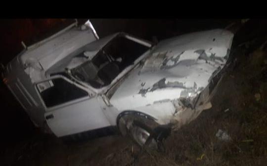 Un utilitario arrolló a los dos animales y, como consecuencia volcó. Por lo que, el conductor sufrió heridas y necesitó asistencia médica, aunque se encuentra fuera de peligro.