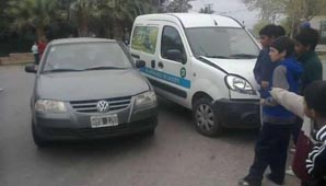 Se trata de Renault Kangoo de la comuna que quedó con la trompa dañada tras colisionar con una WV Gol HYQ 120. La unidad municipal circulaba de este a oeste por avenida de los Ríos y el Gol de norte a sur Por Ignacio De La Rosa.
