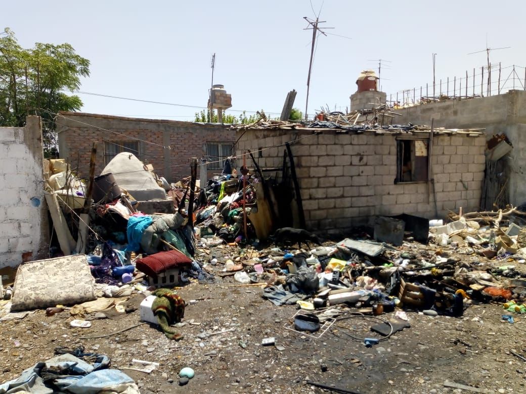 La escena fue devastadora. Tanto la mujer como su hijo estaban totalmente cohibidos por la situación. Como puede apreciarse en las fotografías, el suelo del patio de la casa está repleto de ropa, cajones, juguetes, un colchón y varias cosas más. En lo que parece es el sector de la cocina, solamente lograron rescatar algunos utensilios y un poco de fruta. La familia quedó sólo el débil techo de caña quemada como cobijo.