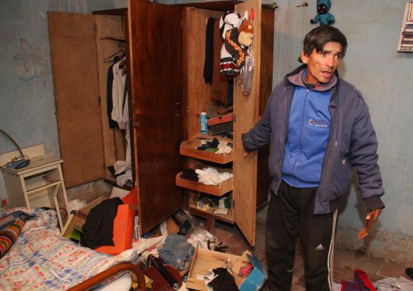 ’No sé cómo seguir. Quiero que alguien me dé una solución porque ya es la segunda vez que me roban en poco más de un año y son pocas las ganas de quedarme en la casa donde nací y crecí’. Virgilio Sagua es un hombre de 50 años que desde hace 3 es celíaco y ayer estaba muy dolido porque nuevamente fue víctima de delincuentes en su humilde vivienda de Chimbas. En 2013, una pareja engañó al hombre y en un descuido, la mujer entró a la casa para robarle alhajas y $12.200 de una herencia. Pero el último martes en la noche, el hombre vivió una situación más violenta. Otra vez una mujer, con tres sujetos encapuchados, lo sorprendió en su comedor y lo tumbaron al piso de un empujón. En el suelo, lo ataron de pies y manos con una sábana y luego le robaron de todo: un TV LED, un radiograbador, una amoladora, herramientas de mano, un DVD, una guitarra, un celular, un billete roto de $100, un tarro con $50 en monedas y hasta la comida especial de su dieta que tenía en la heladera y un mueble fueron parte del botín, precisó la víctima.