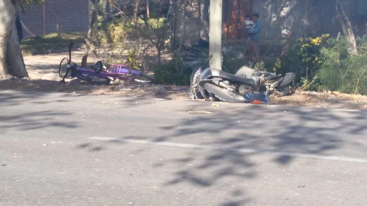 Minutos antes de las 13 de este martes, se registró un violento accidente en Pocito, que dejó como saldo una mujer herida y una moto con serios daños materiales.