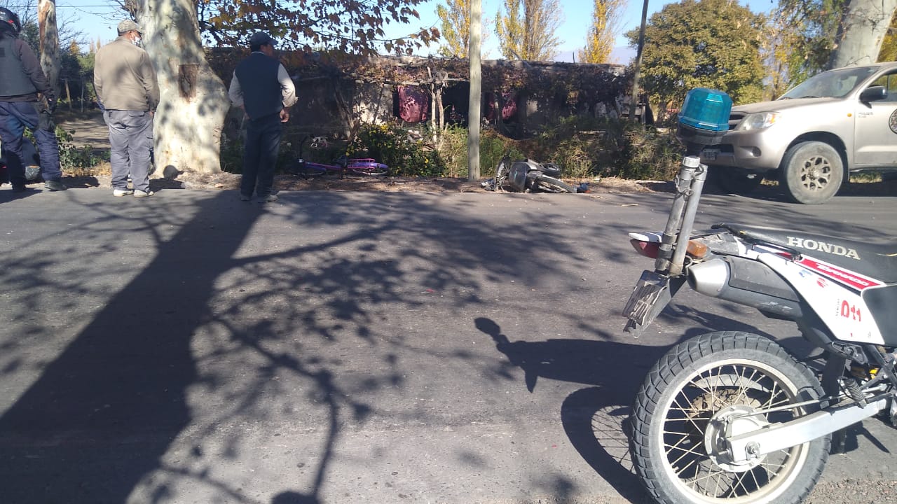 Según informaron testigos del siniestro vial, una motociclista intentó entrar o salir a una vivienda (se desconoce aún) a una vivienda de Calle 11 entre Ruta 40 y Alfonso XIII, pero no se dio cuenta de que justo circulaba una camioneta Toyota Hilux.