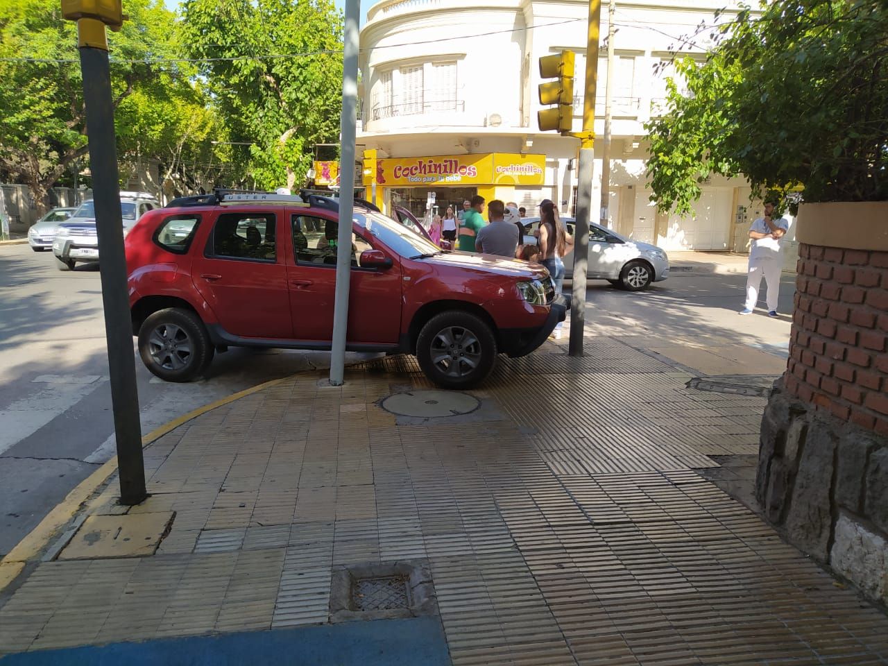 Un camioneta Renault Duster terminó en la vereda Suroeste de la intersección, pero hasta el momento se desconoce si chocó contra otro vehículo o si el conductor realizó una mala maniobra.