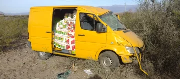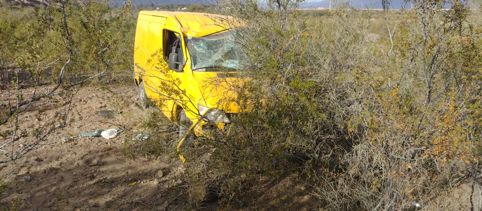 Este jueves en la mañana, una combi Mercedes Benz Sprinter cargada de mercadería protagonizó un siniestro vial en la Ruta 60, que rodea el perilago del Dique de Ullum, a la altura del circuito ASER.
