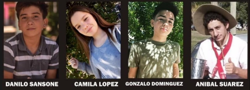 Carlos Aníbal Suárez (de 22 años y quien manejaba), Gonzalo Domínguez (14), Camila López (13) y Danilo Leonel Sansone (13) fallecieron en el acto y sus cuerpos quedaron tendidos a varios metros del impacto, mientras que una adolescente, de 13 años identificada como Rocío Guagliarello, sufrió heridas de gravedad y luego de ser trasladada de urgencia al Hospital San Roque de la localidad platense de Gonnet, fue derivada para ser intervenida quirúrgicamente al Hospital El Cruce-Néstor Kirchner de Florencio Varela, un centro asistencial de alta complejidad, donde permanece internada en estado crítico.