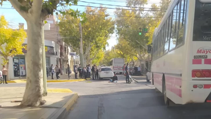 Por razones que se investigan, minutos antes de las 16 horas de este viernes, un automóvil y una moto impactaron en una esquina céntrica con la particularidad de que el semáforo se encontraba funcionando.