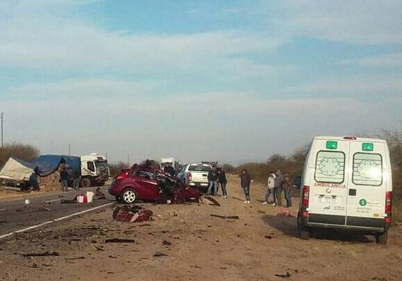 Una pareja y su nena, oriundos de Mendoza, murieron ayer a las 8.45 al chocar en un auto de frente contra un camionero sanjuanino que transportaba zanahorias. Diario El Independiente informó que el siniestro ocurrió en la zona de Mascasin, en la ruta 141, a unos 45 km al Oeste de Chepes, La Rioja. Martín Andrés Laconi Rodríguez (34) conducía un Ford Fiesta Kinetic acompañado de su mujer, Patricia Estela Romero (36), y Felicitas Laconi Romero (2). Esta familia viajaba hacia el Norte por la ruta. En sentido contrario, circulaba José Luis Maldonado (43) en un camión Iveco. Este hombre vive en Santa Lucía y viajaba de Catamarca a Mendoza. El único testigo fue Maldonado, quien refirió a la Policía que el automovilista se salió de la cinta asfáltica y al reingresar chocó al camión. Suponen que Laconi se durmió.