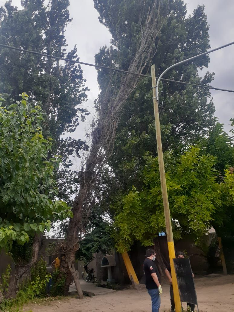 De inmediato se acercaron al lugar y vieron el álamo de unos 20 metros de alto que había caído el tendido eléctrico de Hipólito Irigoyen, al 6637 Este, en la localidad La Legua.