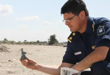 Una granada de mano fue encontrada ayer por un empleado de una escombrera que tiene la Subsecretaría de Medio Ambiente en calle 7, metros al Este de Mendoza, Pocito. El artefacto tenía solamente la carga explosiva e investigarán su procedencia y cómo llegó allí, precisó el comisario Marcelo Heredia de bomberos de Rawson.