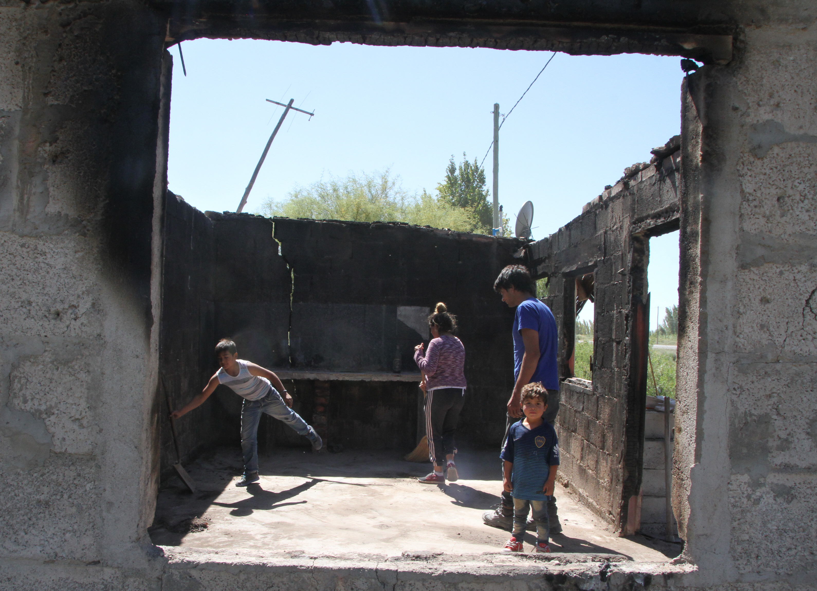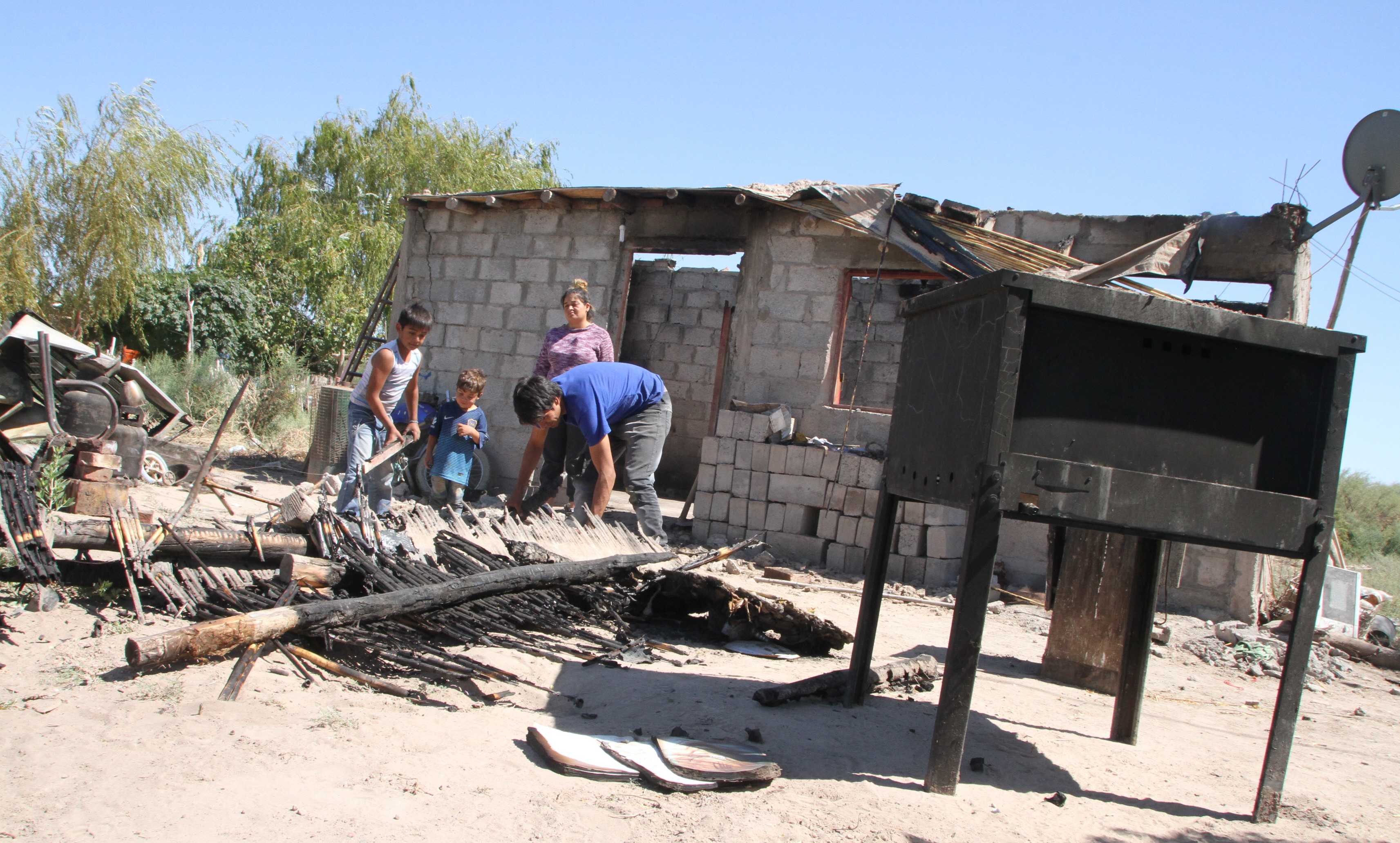 Para Walter Romero (27) y su mujer Micaela De la Vega (23) había terminado otro día difícil. Esos de poner el hombro en las gamelas para ganarse el sustento, para ellos, su hijo de 4 años y el bebé que esperan (está embarazada de 6 meses). Como todos los días, porque cuando no es la cosecha de uvas es armar los termos con café y el bolso con las semitas que ella hace para vender en el cruce de Ruta 40 y 153, en Media Agua, Sarmiento. El lunes a la tarde se fueron a la cosecha, llegaron a su casa de Tres Esquinas (en el km 109 de la Ruta 40), se arreglaron un poco y toda la familia partió rumbo a Media Agua por la posibilidad de un trabajo para Walter. Pero no alcanzaron a poner un pie en el centro mediagüino situado a 4 km de su casa, cuando un familiar los llamó para avisarles que su casa estaba en llamas. La desesperación les ganó por completo, y también la impotencia, porque todos los vecinos se arremolinaron en esa casa precaria de 8 metros por 4, dividida en cocina comedor y un dormitorio, pero nada pudieron hacer porque no había de dónde sacar agua.