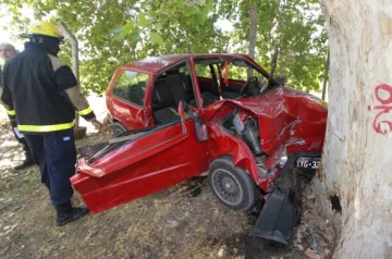 Una joven sufrió cortes y otras lesiones que no ponían en riesgo su vida, al estrellarse contra un árbol ayer al mediodía en calle General Acha, unos 300 metros al Norte de Progreso, en Rawson. La víctima fue Celina Roxana Ferrufino, madre de una beba de un poco más de 1 año y medio. Justamente a esa criatura iba a buscar en su auto Fiat Uno (foto), algo habitual pues es auxiliar de enfermera y cuando trabaja por las noches se la deja a sus padres que vive en el barrio Amecom, situado a poca distancia de donde se accidentó. Según Raúl Ferrufino, todo pasó porque, al parecer, su hija intentó pasar a una camioneta que también se abrió de repente y no le dejó alternativa.