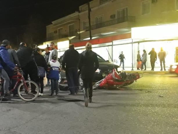 Esta noche, un Volkswagen y una moto 110cc protagonizaron un choque en la esquina de diagonal Sarmiento y Fray Justo Santa María de Oro, en Caucete.