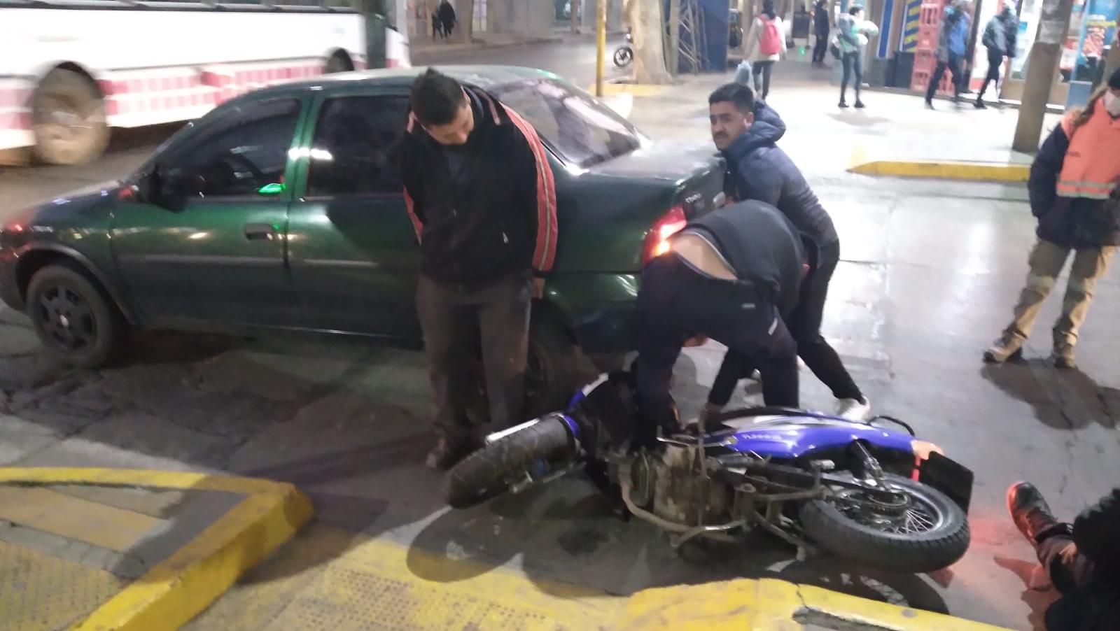Pasadas las 19 horas de este jueves, un siniestro vial en Mendoza y Santa Fe sacudió la rutina que podría haber acarreado peores secuelas. Un hombre de 36 años, al volante de un Corsa, circulaba por calle Mendoza hacia el sur, cuando llegando a la esquina con Santa Fe frenó porque el semáforo dejó de estar en verde. La repentina decisión no le dio lugar de frenar a tiempo a un motociclista de aproximadamente 35 años de edad, quien circulaba en el mismo sentido y embistió de atrás al vehículo de 4 ruedas.