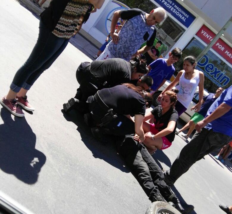 Una mujer que circulaba en moto por Comandante Cabot pasando España cayó de golpe, luego intentar esquivar un perro que se le cruzó.