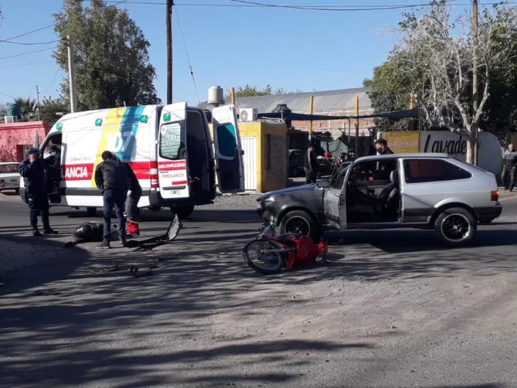 Según las fuentes, una mujer de 34 años, identificada de apellido Aballay impactó su moto Maverick 110cc con un VW Gol, guiado por otra señora de apellido Bertocci (47).