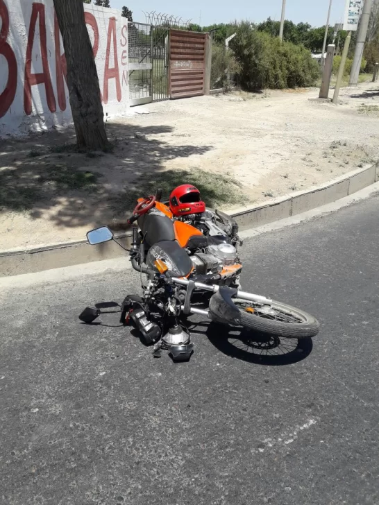 Según testigos del siniestro vial, una mujer de 46 años, quien guiaba una moto 125 cc, tuvo que ser trasladada al Servicio de Urgencias del hospital Rawson por diversos golpes que sufrió. Allí fue identificada con el apellido Lagos.