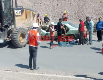 Según las fuentes, la máquina estaba trabajando en la Ruta 40, en Albardón, cuando al realizar una maniobra hacia atrás aplastó al Dodge 1500 que estaba justo en el lugar.