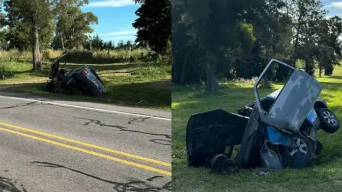 De acuerdo con las imágenes difundidas por los medios uruguayos, el auto quedó en un estado completamente irreconocible luego del fatal accidente. El techo se derrumbó y se partió en dos, mientras que una porción del motor quedó esparcida sobre el césped con el capó abierto, como consecuencia del brusco vuelco experimentado.