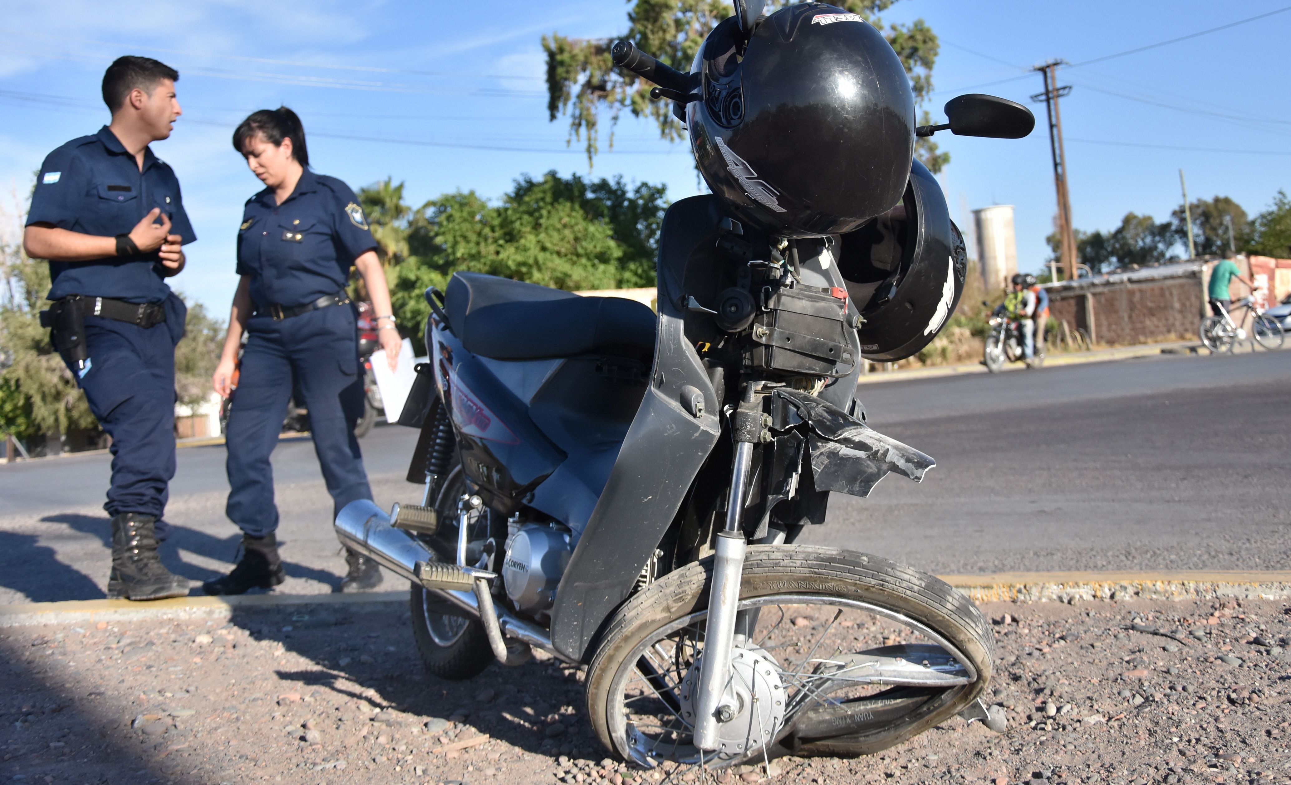 El choque de ayer, minutos antes de las 18 en Chimbas, fue impresionante. Una de las víctimas voló contra el parabrisas del auto. Madre e hijo quedaron tendidos por largos minutos hasta que los trasladaron al Hospital Rawson. Más tarde informaron que sus vidas no corrían riesgo. Roberto Templado (23), el conductor de esa moto Korven 110cc, sufrió fractura en una de sus piernas y otras heridas menores. Mirta Ibazeta (50), su madre, terminó con politraumatismo. Es decir, diversos golpes que en apariencia no revestían gravedad, dijeron en la Policía.