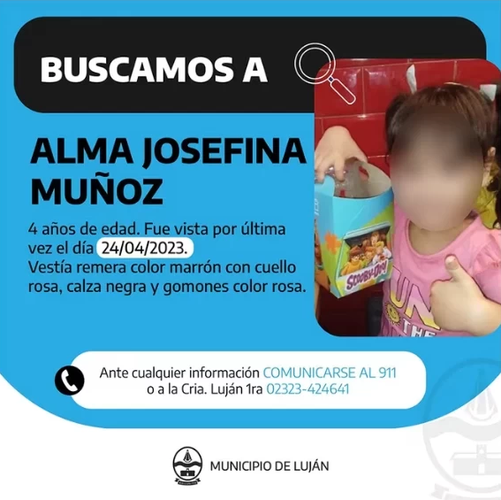 La búsqueda fue llevada adelante por policías y vecinos, además de la difusión de imágenes de Alma en las redes sociales, junto con información respecto de su vestimenta.