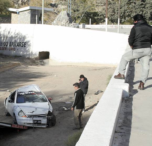Dos noviecitos se llevaron el susto de su vida ayer en la mañana cuando, por una maniobra brusca, su auto chocó al costado del Monumento al Ciclismo y cayó de una altura de 4 metros hasta el fondo de uno de los piletones ubicados cerca al Camping de Rivadavia. Tuvieron suerte porque no había agua, además de que no sufrieron heridas graves pese a que el auto quedó dado vuelta, dijeron en la policía.