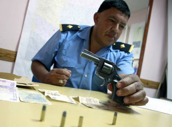 Una pareja fue detenida ayer a la 1 con un revólver calibre 22 corto (tenía 4 cartuchos y una vaina servida) por efectivos del Comando Radioeléctrico tras una persecución que terminó en el cruce Neuquén y José María Paz, Rawson. Según la policía, Richard Figueroa (21) tiró el arma a una acequia antes de ser requisado con su novia Yésica Álvarez (26).