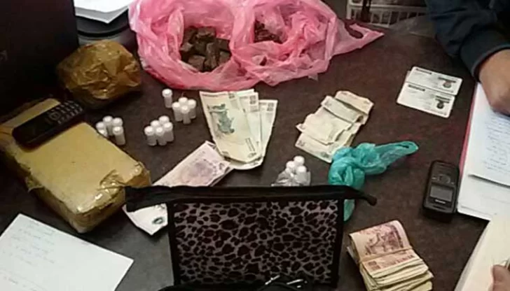 Ambos tenían en el domicilio 3,232 kilos de marihuana, 18 tubos de vidrio con cocaína de máxima pureza, elementos para comercializar la droga y dinero en efectivo.