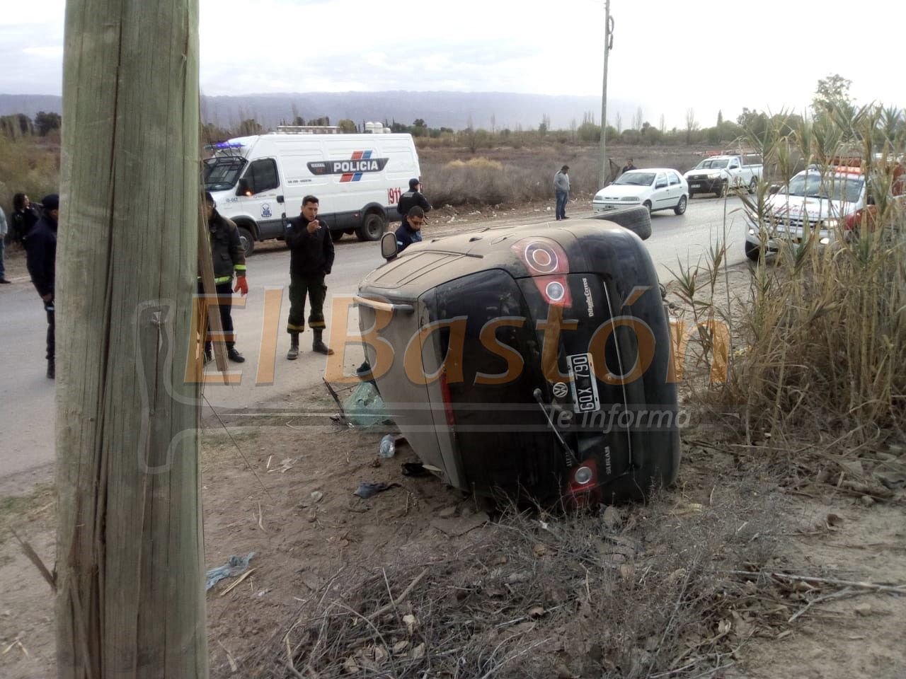 Este lunes, pasadas las 9, ocurrió un siniestro vial en calle Justo Castro, a metros de Enfermera Medina, en Caucete. Un Volkswagen Suran en el que circulaba una pareja volcó y casi ocurre una tragedia.