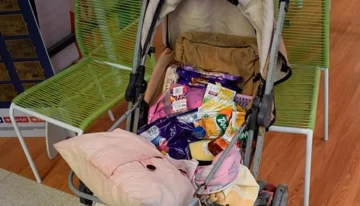 Pero comenzaron a sonar las alarmas y personal policial le pidió a la señora que exhibiera lo que llevaba en el cochecito. Dio algunos productos pero la alarma continuaba sonando y por este motivo, entregó paquetes de carne, un proyector LED, shampoo, una botella de fernet, cuchillos y galletas dulces.