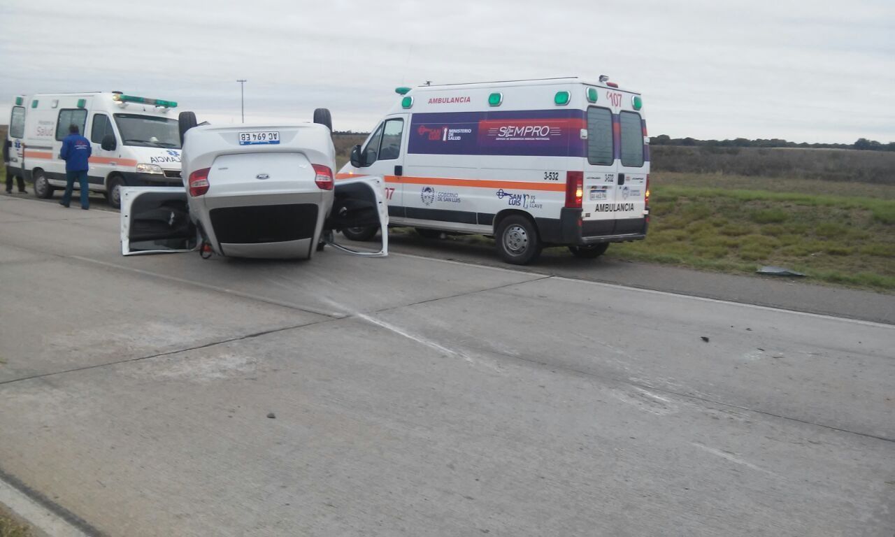Un Ford Ka volcó en el kilómetro 722 de la Autopista Serranías Puntanas cerca de Fraga, en la provincia de San Luis, y en el interior viajaba una pareja sanjuanina. Por ese accidente, los dos pasajeros fueron trasladados hacia esa localidad para ser atendidos en el hospital.