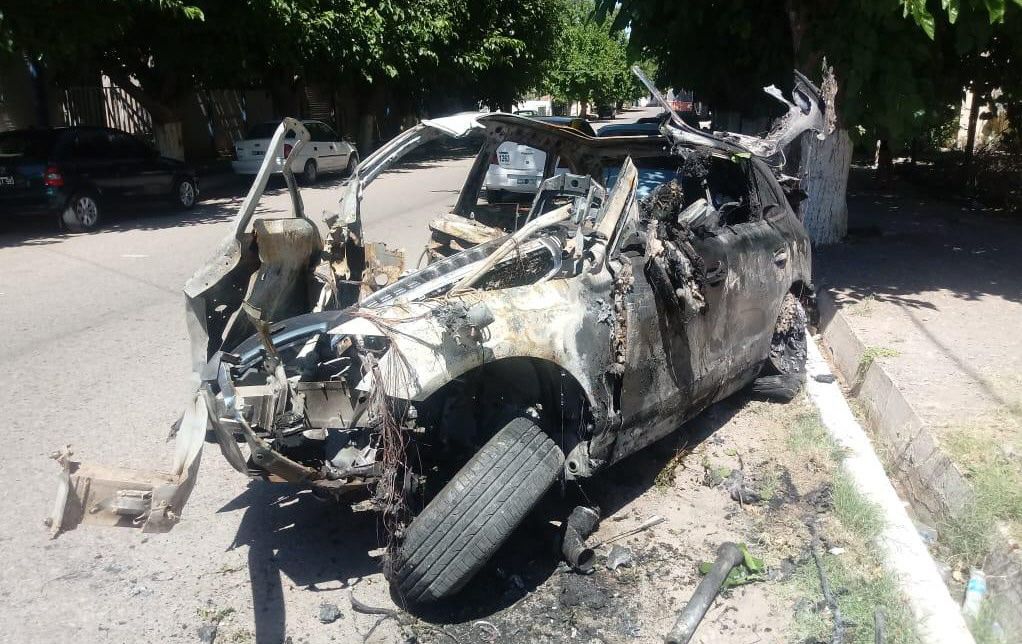 La violencia del impacto hizo que el auto quedara completamente destruido e inmediatamente se incendiara. El conductor quedó atrapado y murió en el acto. Ante la falta de cinturón, su acompañante salió despedida varios metros fuera del vehículo, pero pese a los intentos de los médicos que acudieron al lugar, llegó sin vida al nosocomio.