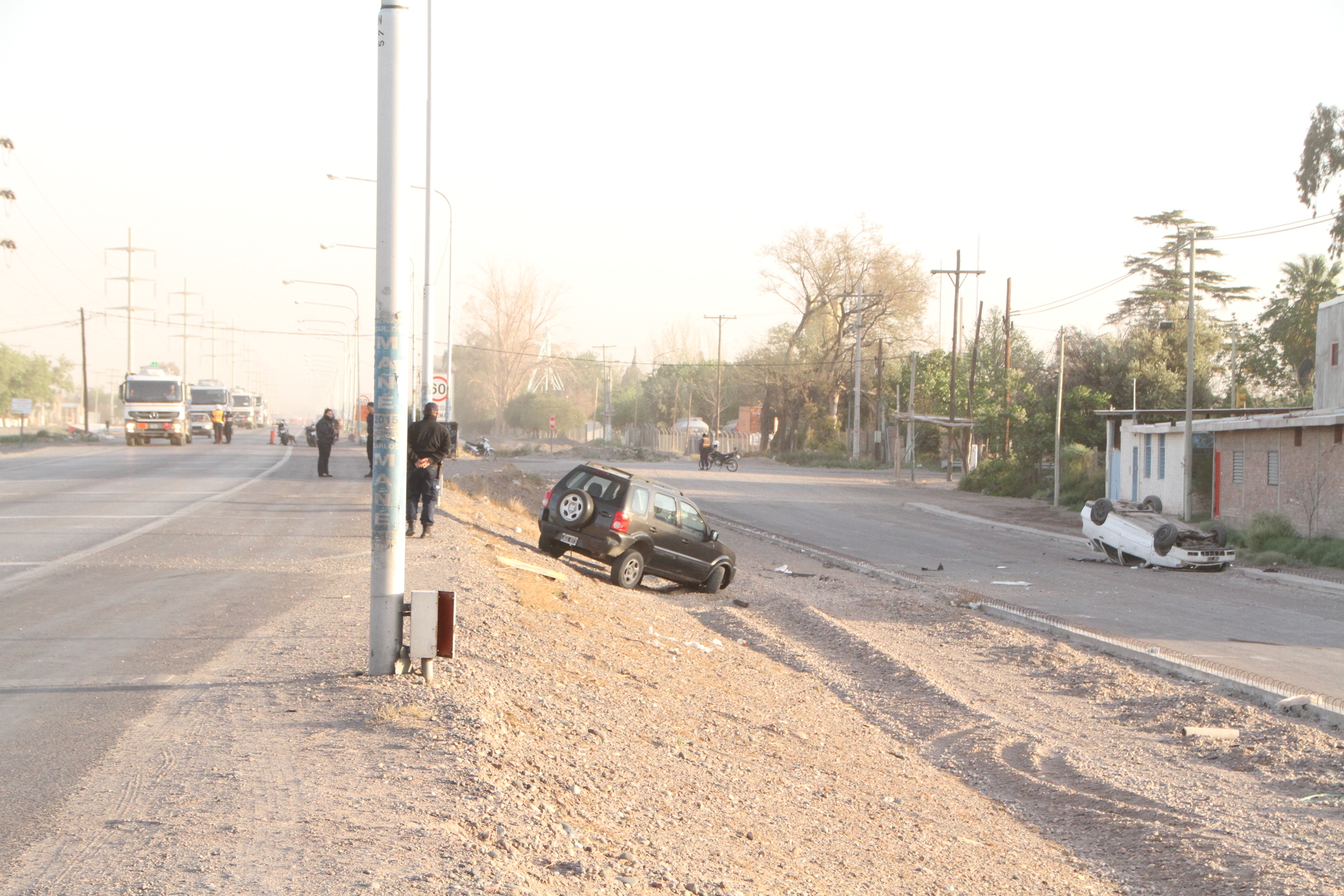 Un terrible accidente se produjo antes de las 6 de este domingo en Chimbas, sobre Ruta 40 antes de Oro. Una pareja viajaba en su auto cuando el conductor perdió el control y le vehículo terminó volcado en la calle lateral. Como consecuencia, el hombre falleció en el acto. La joven, por su parte, fue trasladada al Hospital Rawson.