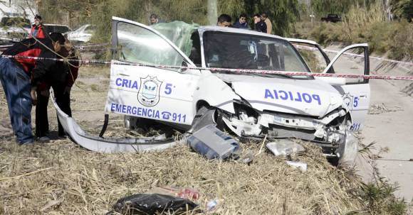 El accidente ocurrió alrededor de las 13 sobre calle Balcarce, entre Buenos Aires y Hugo Wast, más precisamente unos 40 metros al Norte de una calle Proyectada, donde hay una curva pronunciada y en declive. A esa hora, el agente y chofer Marcos Zárate (con golpes leves y detenido) conducía un patrullero Chevrolet Corsa de la comisaría 5ta. A su lado iba sentado su compañero, el cabo Luis Martínez (jefe de la patrulla, internado fuera de peligro), y detrás, la agente Verónica Rodríguez (27 años, soltera, con 2 años y medio en la fuerza), quien habría sido la única que viajaba sin cinturón, informó una alta fuente policial.